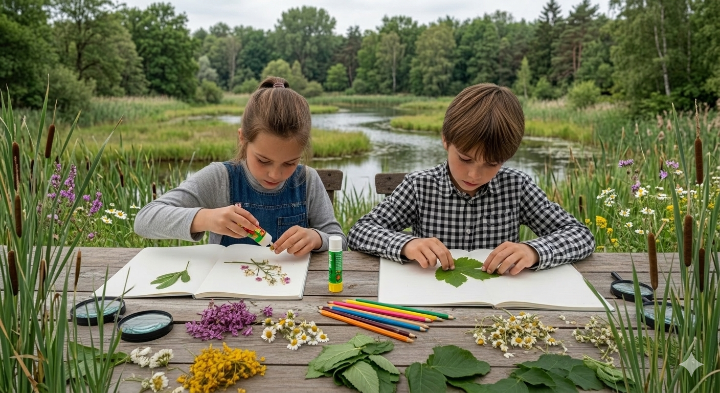 Après la balade, nous ramasserons quelques feuilles et fleurs pour nous installer bien au chaud dans la verrière de la maison éclusière. Là, chacun pourra créer son propre herbier : coller, classer, nommer et décorer les plantes récoltées, comme un vrai petit botaniste !