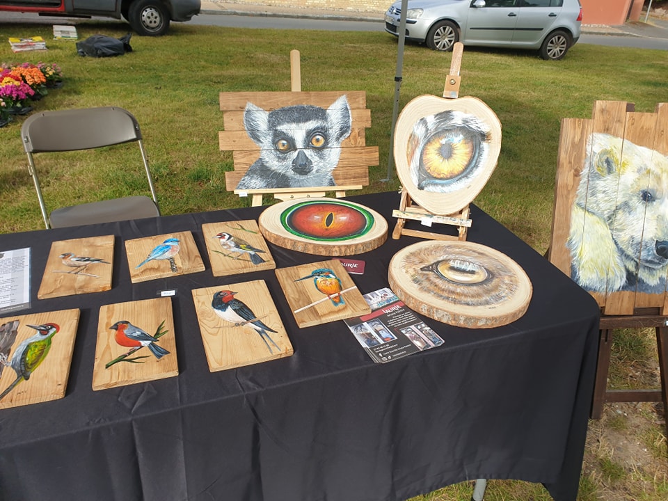 Laurie Guerville est une artiste peintre installée en Baie de Somme. Elle développe une pratique polyvalente et expressive, allant de la peinture sur toiles à des œuvres murales, fresques, décors et portraits animaliers, mêlant imagination et observation du monde vivant.