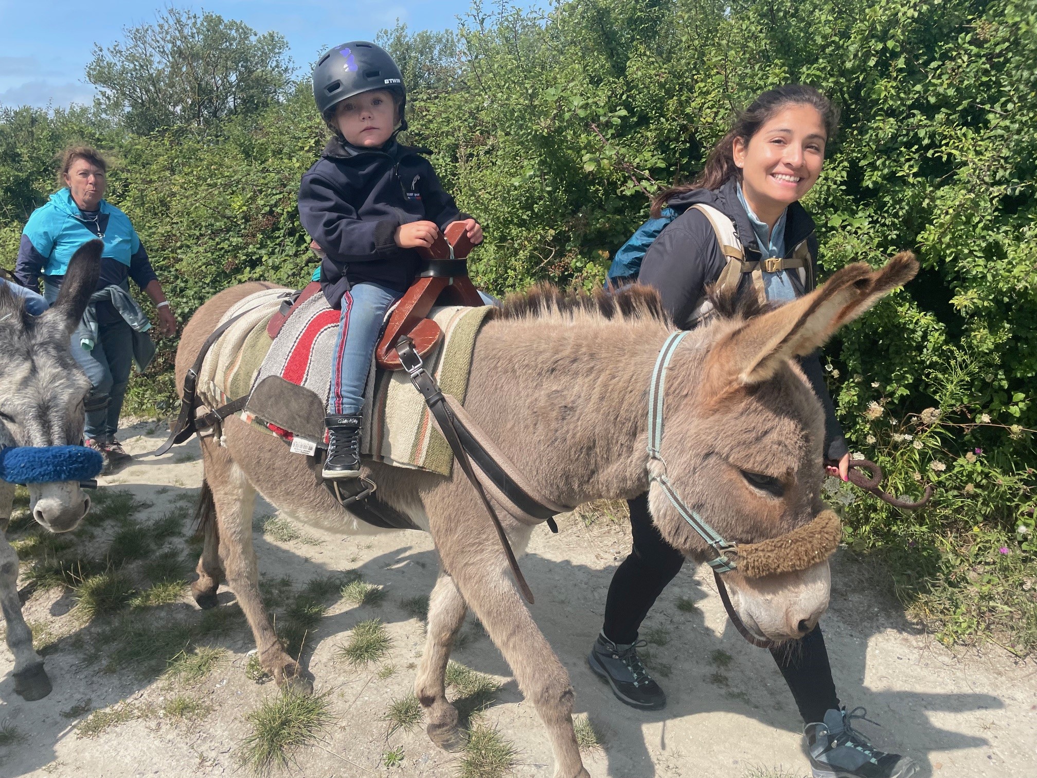 Charge maximale sur le dos de l'âne : 35 kg matériel inclus (enfants de 4 à 10 ans strictement).