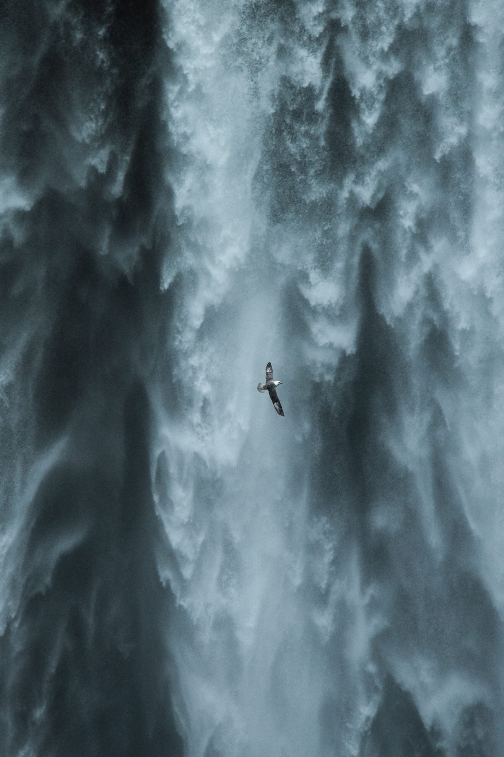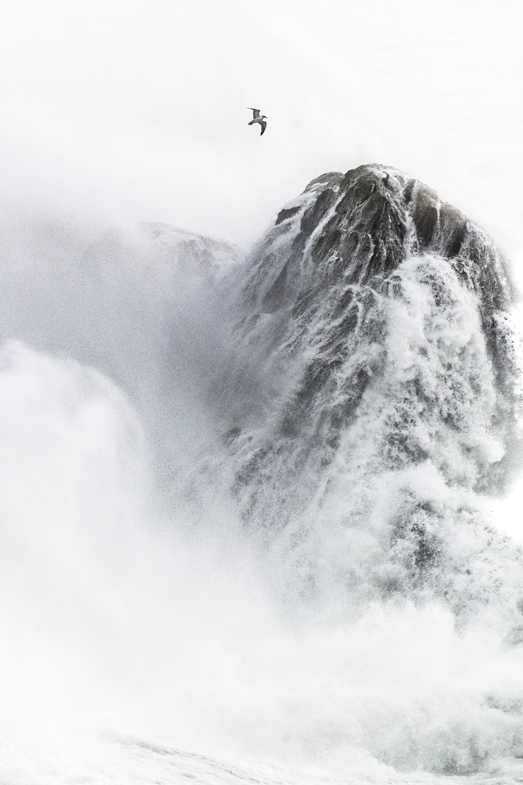 L’oiseau, comme note animale, se retrouve seul dans une immensité qui est soulignée par le format vertical des tirages. C’est ainsi que le titre de cette série : Vertiges, prend tout son sens. L’oiseau n’est plus le sujet principal de l’image, il en devient un composant au même titre que sont environnement.